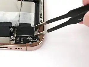 Используйте пинцет с притуплённым носиком или пальцы, чтобы совместить Taptic Engine с его установочными стойками и установить его в корпус.