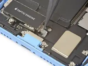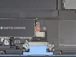 Снимите два винта Phillips 1,8 мм, фиксирующих Taptic Engine.