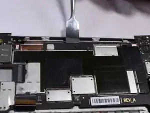 Используя металлическую лопатку, пройдитесь по периметру основной платы и экрана.