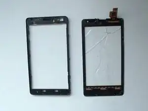 Дисплей приклеен к сенсорному стеклу двусторонней клейкой лентой.
