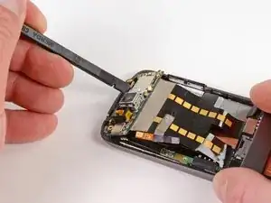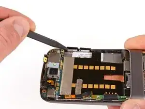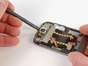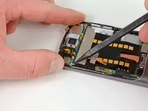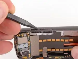 Используя лопатку, подденьте вверх разъём второго микрофона.