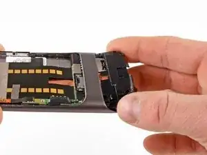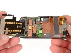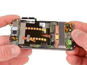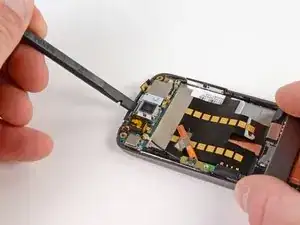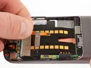 Осторожно поднимите плату микрофона, чтобы отклеить ленту от телефона.