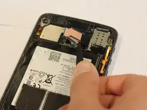 Медленно и осторожно поднимайте планку, пока она не выйдет из корпуса телефона и не останется соединённой только чёрной лентой.
