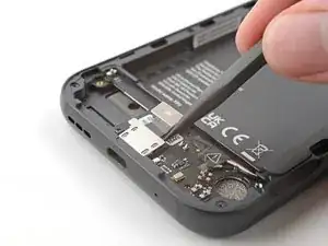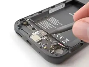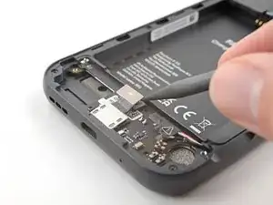 Подденьте наконечником монтажного инструмента металлическую пластину у головки порта зарядки.