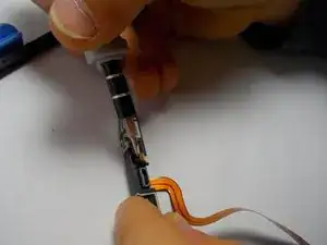 После снятия металлической защёлки аккуратно приподнимите соединение шлейфа, расположенное под только что снятой защёлкой.