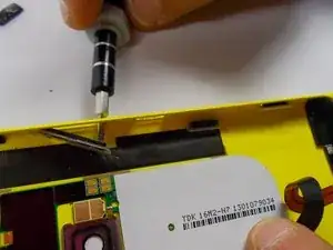 Осторожно подведите отвёртку под микрофон, как показано.