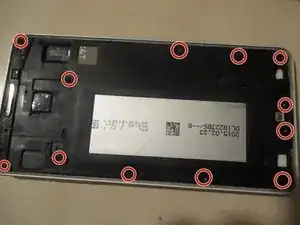 Снимите 12 винтов PH00, удерживающих среднюю рамку.