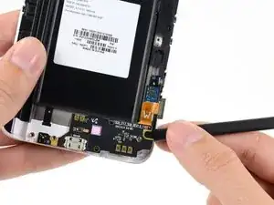Осторожно отсоедините разъём кабеля дисплея плоским концом лопатки.