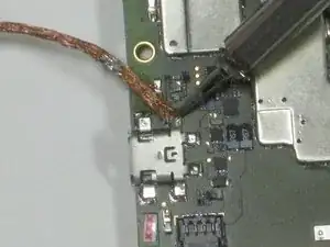 После выполнения предварительных руководств по материнской плате и передней сборке у вас будет материнская плата в руках. USB-разъем для зарядки расположен в нижнем левом углу платы, верхняя часть — там, где находятся камеры. Теперь примените свои навыки выпаивания на четырёх паяных соединениях и замените USB-разъем для зарядки.