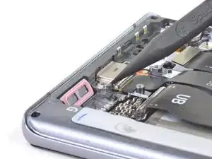 Подденьте порт USB-C, чтобы ослабить его крепление в каркасе.
