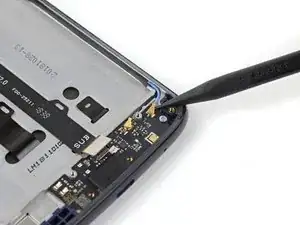 Используйте заостренный конец лопатки, чтобы поддеть и отключить синий антенный кабель.