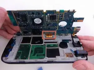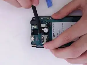 Вставьте пластиковый инструмент для поддёма в зазор между материнской платой и основанием телефона.