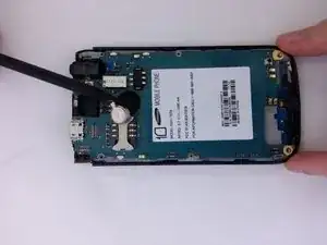 Вставьте пластиковый инструмент для вскрытия между задней сборкой и телефоном.