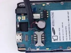 Используйте плоский конец лопатки, чтобы отсоединить кабель вибромотора от материнской платы.