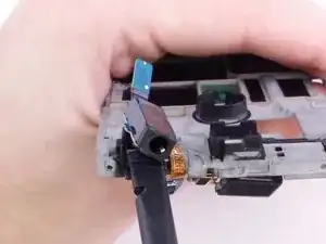 Используйте плоский конец лопатки, чтобы отсоединить кабель модуля камеры.