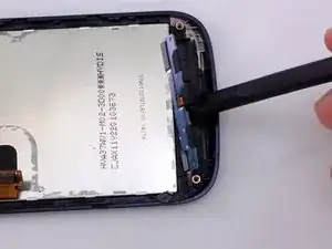 Используйте пластиковый инструмент для вскрытия, чтобы поддеть и приподнять ЖК-дисплей от стекла сенсора.