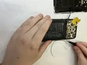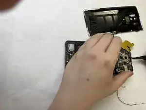 На обратной стороне сборки материнской платы отделите модуль камеры от материнской платы.