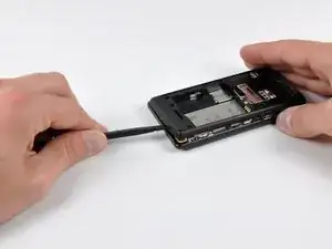 Аккуратно вставьте лопаточку между задним и передним корпусами в верхней части телефона, рядом с разъёмом для наушников.