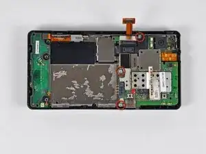 Снимите семь винтов Torx T5 длиной 5,5 мм, фиксирующих задний корпус с внутренним каркасом.
