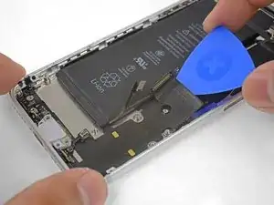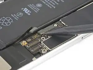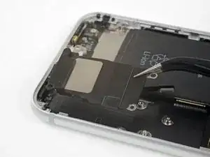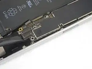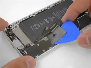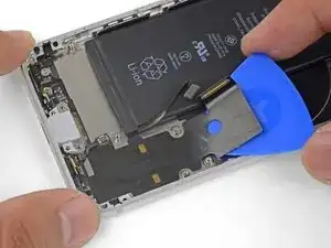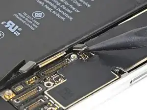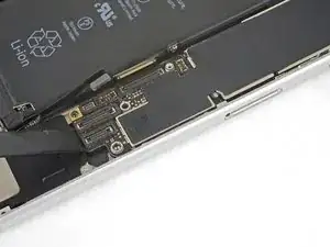 Часть катушки беспроводной зарядки находится непосредственно под этой частью гибкого кабеля разъёма Lightning. Агрессивное поддевание может повредить катушку.