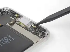 При необходимости используйте фен или iOpener повторно, чтобы повторно нагреть область за гибким кабелем сборки разъёма Lightning и упростить отделение.