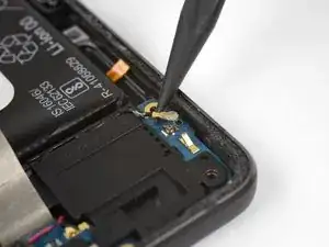 Используйте инструмент для вскрытия, чтобы аккуратно приподнять мотор вибрации и отделить его от клея, крепящего его к телефону.