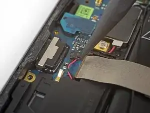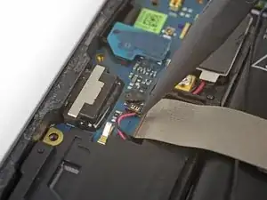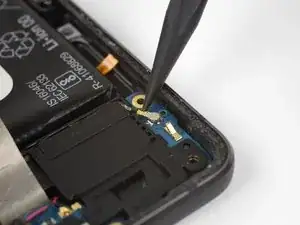Используйте инструмент для вскрытия, чтобы слегка приподнять сборку громкоговорителя из её углубления в телефоне.