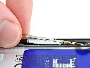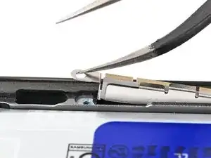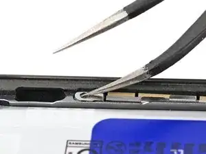 Вставьте одну сторону изогнутых пинцета или инструмент для извлечения SIM в нижнее посадочное отверстие крепления нижней антенны.