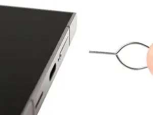 Нажмите инструмент для извлечения SIM‑карты в отверстие лотка, чтобы извлечь лоток SIM‑карты.