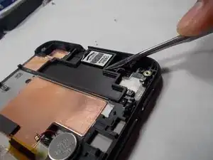 С помощью пинцета отключите аккумулятор от материнской платы, чтобы в дальнейшем можно было извлечь материнскую плату из устройства.