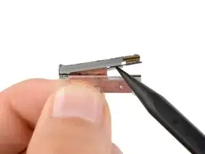 Захватите пинцетом верх и низ коаксиального разъёма синей антенны как можно ближе к головке разъёма.