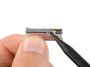 Используйте заострённый конец лопатки, чтобы поддеть и отсоединить нажимной разъём дисплея.