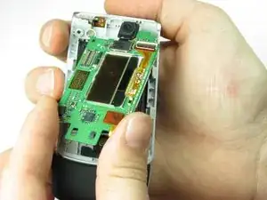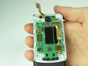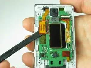 Используйте лопатку, чтобы аккуратно отключить шлейф от телефона.