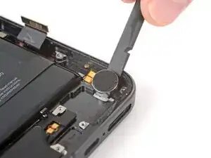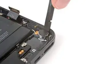 Используйте плоский конец лопатки, чтобы поддеть вибромотор по его правому краю.