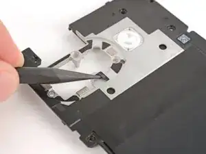Используйте пинцет, чтобы приподнять и снять крышку разъёма аккумулятора.