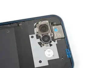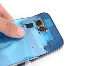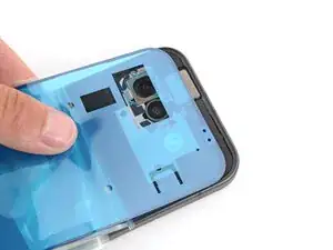 Задняя крышка фиксируется клеем по периметру рамки и в районе камер. Используйте эту фотографию в качестве ориентира при отделении клея.