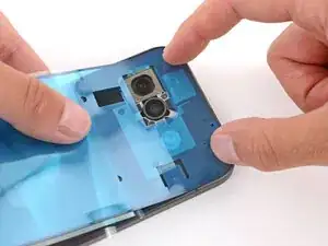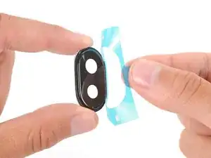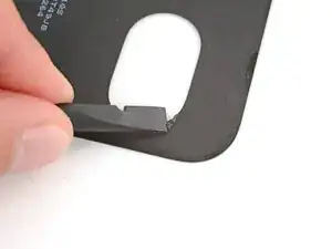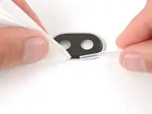 Разместите клей на нижней части задней крышки, убедившись, что вырез проходит вокруг ободка камеры.