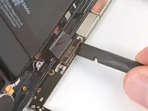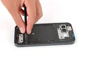 Оттяните верхний край платы вправо от рамки, пока порт зарядки полностью не выйдет из своего гнезда.