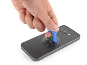 Установите присоску рядом с центром правого края задней крышки, как можно ближе к краю.