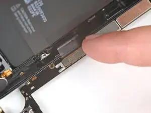 Используйте пинцет, чтобы зацепить левый край крышки разъема батареи, затем опустите крышку и уложите её ровно.