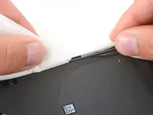 Используйте изопропиловый спирт высокой концентрации (>90%) и безворсовую ткань (или кофейный фильтр), чтобы очистить и удалить остатки клея.