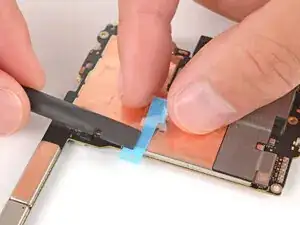Используйте пинцет, чтобы приподнять и снять крышку кабеля экрана.