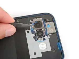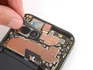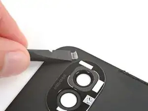 Если ободок камеры оторвался от задней крышки и остался приклеенным к телефону, выполните этот шаг, чтобы удалить его. В противном случае пропустите этот шаг.