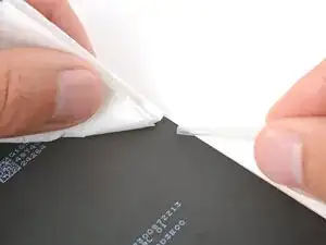 Снимите большую прозрачную подложку с внутреннего клеевого слоя задней крышки.