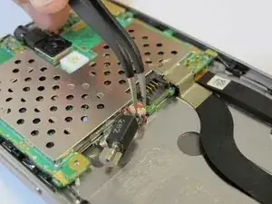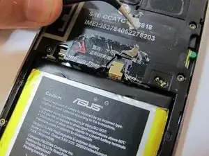 Отсоедините соединительный шлейф батареи с помощью пинцета.
