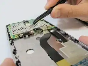 С помощью пинцета выньте мотор из корпуса, тянув штекер вниз от телефона.