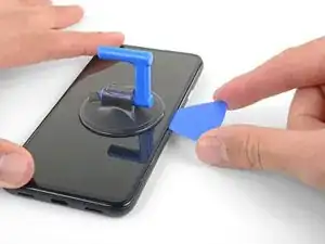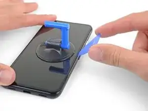 Вставьте ещё одну монтажную лопатку в правый край телефона под углом в месте, где уже образовался зазор, чтобы не повредить OLED-панель.