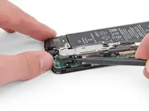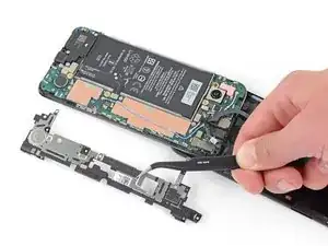 Используйте пинцет, чтобы полностью снять ленту, закрывающую разговорный динамик.