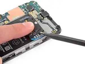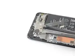 Используйте кончик пинцета, чтобы поддеть вибромотор и снять его с средней рамы прямо вверх.