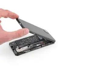 После того как вы отрежете клей по периметру телефона, аккуратно приподнимите правый край экрана, откройте телефон как книгу.